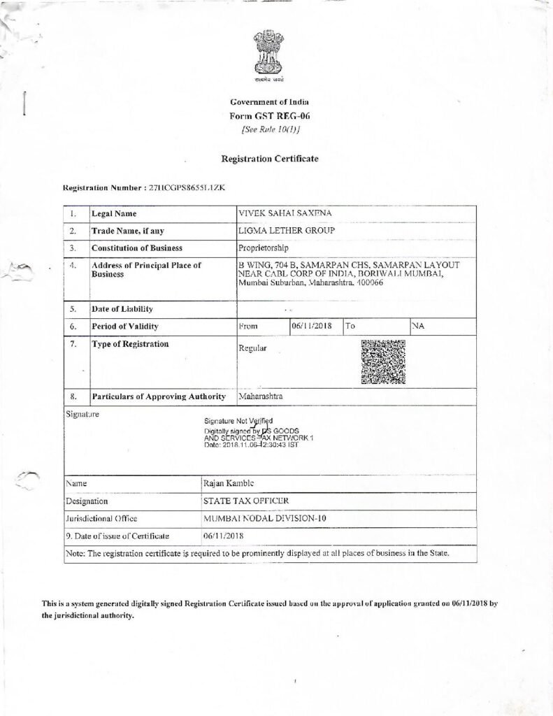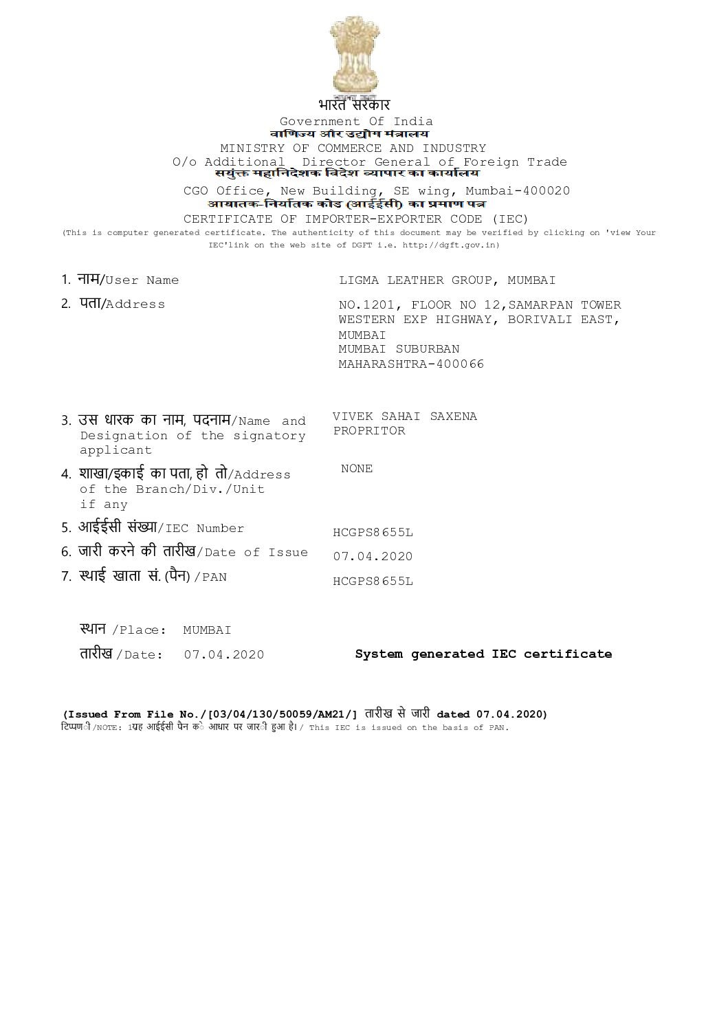 The Management of Ligma Leather Group Mumbai is headed by Mr. Vivek Sahai, a seasoned business man with a B, Tech degree & long practical experience.